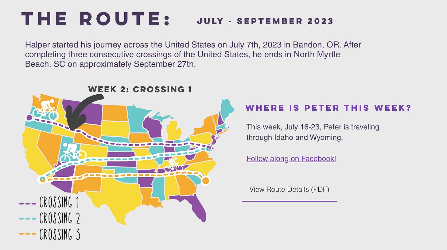 The conversation turned to Peter Halper, the cyclist. A mid fifties, gentle faced father, grandfather with a heart the size of his state of Wisconsin.